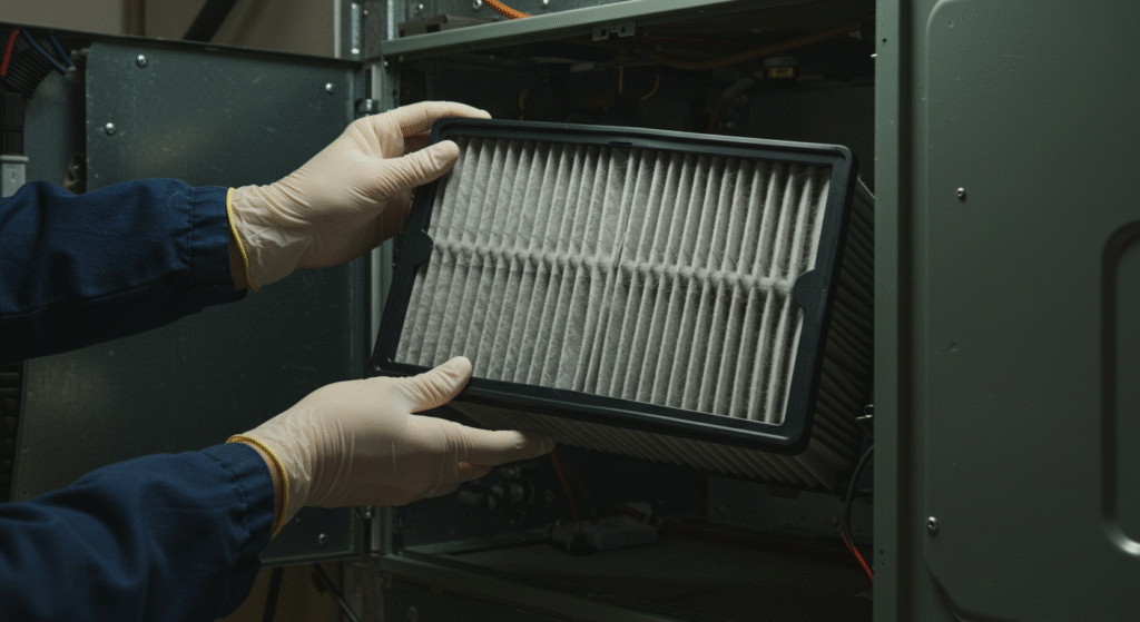 - Identify the filter location — often in the return vent, furnace air handler, or wall grill.